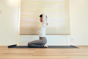 - 両手を重ねておでこを乗せ、首と肩はリラックス